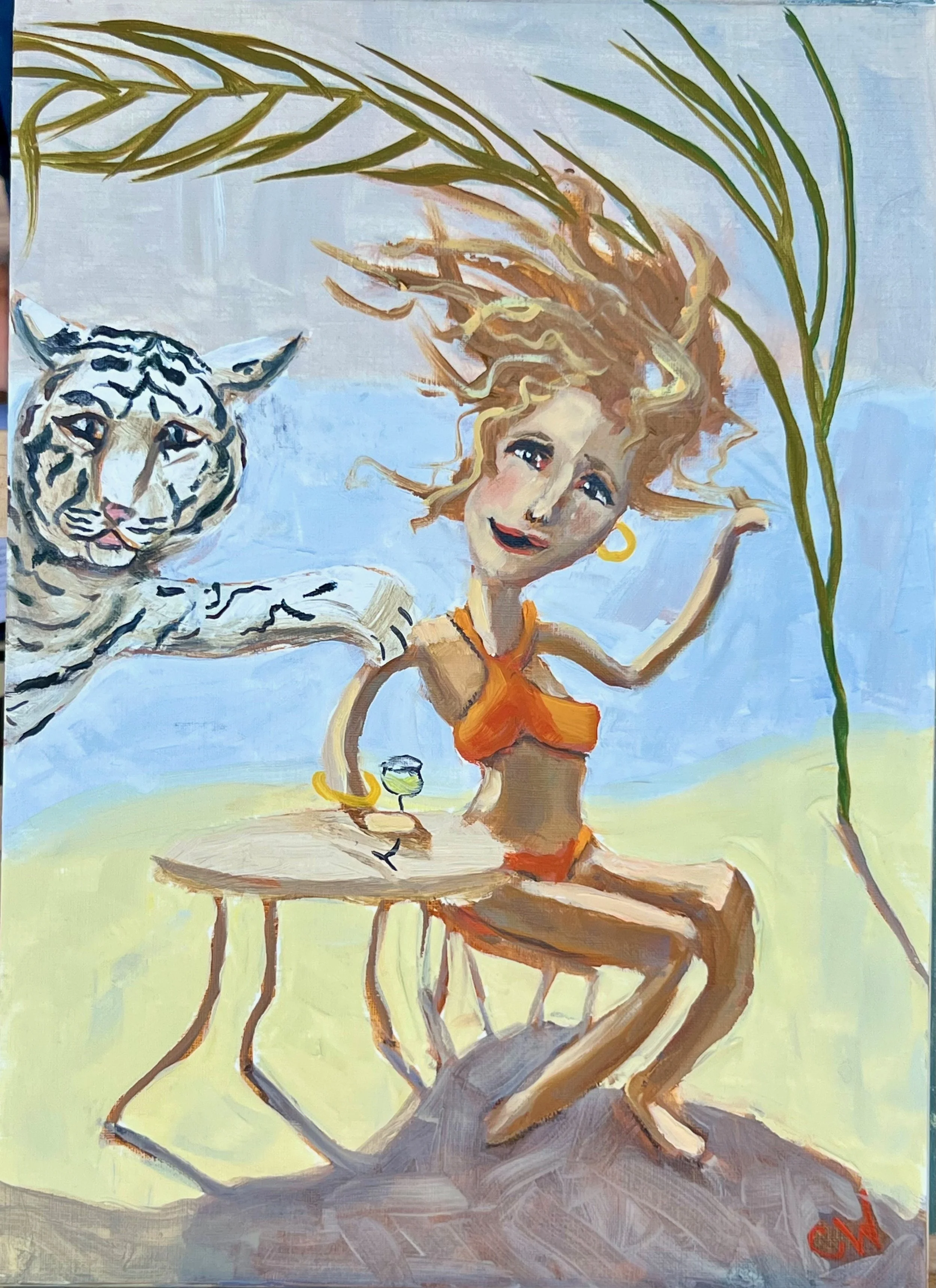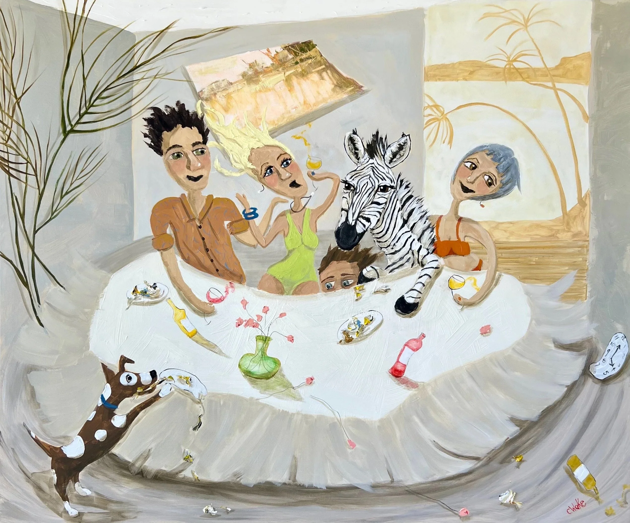 Artist Statement -"As an artist, I am compelled to go beyond a purely decorative visual connection between the artist and viewer, to a place where my work is a catalyst ofdiscussion, challenge, or humor. My works insists the viewer interacts with the painting and I am fascinated by individuals reactions and interpretations. My aim is to engage, uplift and humour."