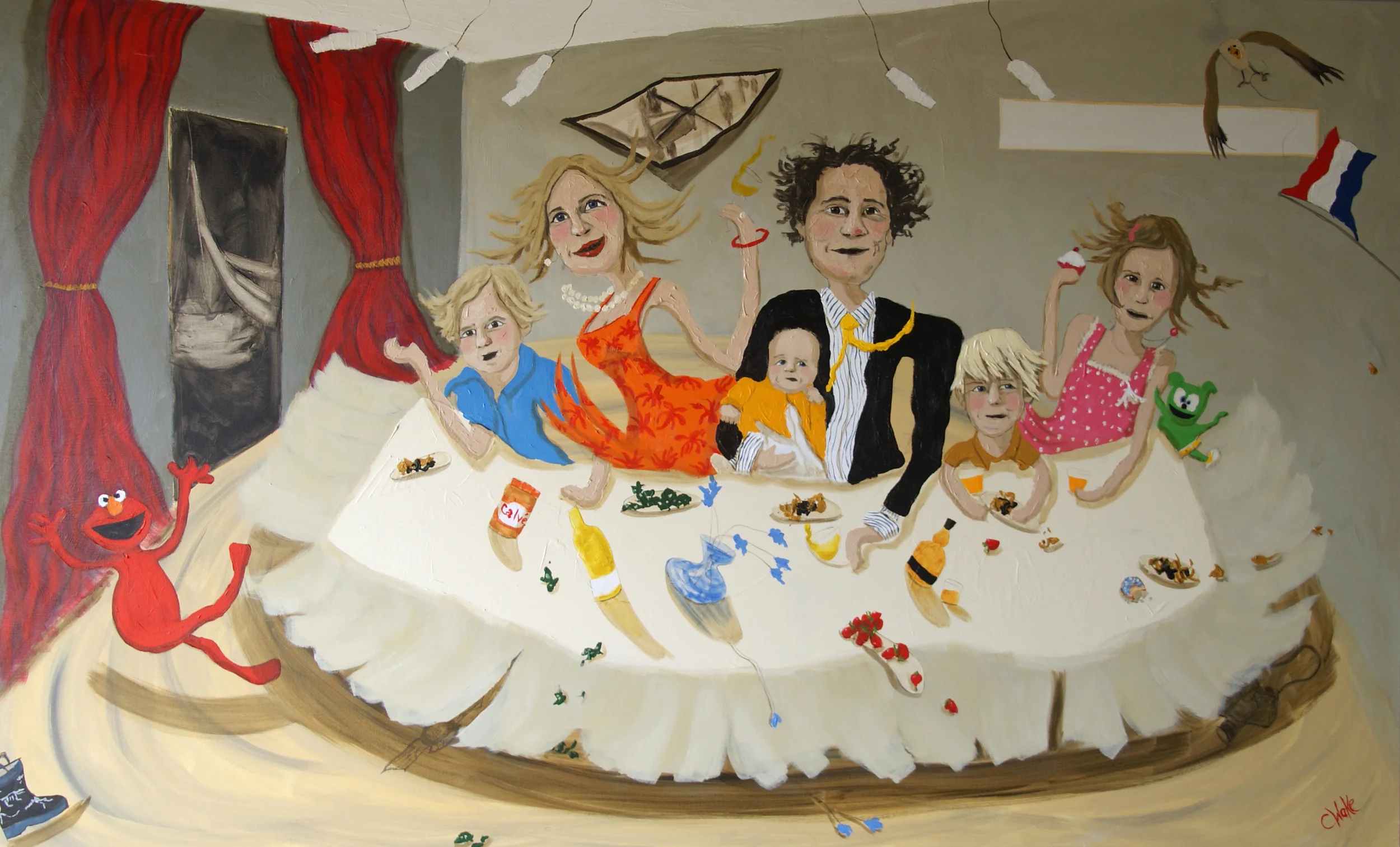 Chris Wake paints quirky family portraits by commission please contact Chris for more details